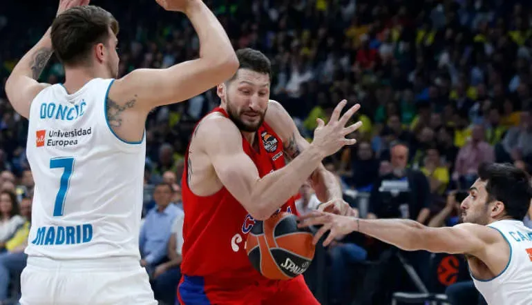 Luka Doncic en el Real Madrid jugando ante el CSKA (AP Photo y Darko Vijonovic)